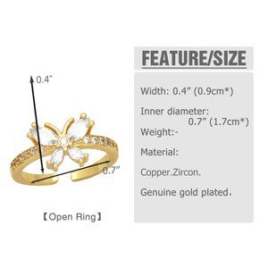 3/$35 Butterfly 18K Gold Plated Copper Open Ring Cubic Zirconia CZ Diamond
