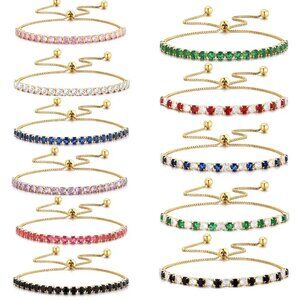 Pink Cubic Zirconia CZ Copper Gold Chain Bracelet Adjustable Diamond Jewelry
