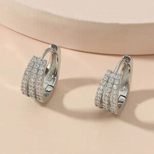 3/$35 Copper Triple Row Earrings Dainty Silver Cubic Zirconia CZ Hoop Huggies