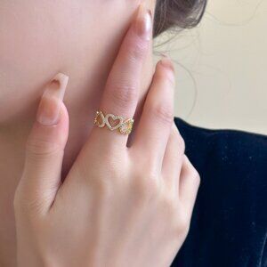 3/$35 Dainty Gold Hearts Shape Open Ring Cubic Zirconia CZ Diamond Jewelry