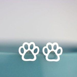 3/$35 Dainty Small Dog Cat Paw Print Ear Stud Earrings Silver Cute Jewelry
