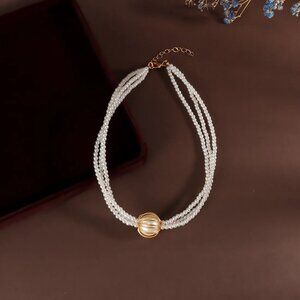 3/$35 Elegant Multi-Strand Faux Pearl Choker Vintage Style Gold Ball Bead Bride