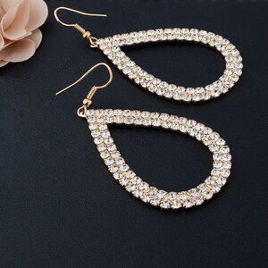 3/$35 Glam Oval Drop Dangle Rhinestones Earrings Gold Tone Diamond Bling Jewelry