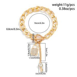 Classic Charm Bracelet Link Chain Gold Key Lock Rhinestone Jewelry