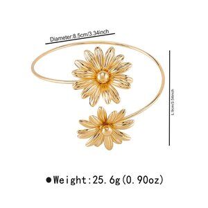 Elevate your summer style with this stunning gold floral arm cuff bracelet. Featuring beautifully crafted daisy flowers, this boho-inspired jewelry piece adds a touch of elegance and charm to any outfit. Perfect for women and teens seeking a unique, statement accessory for beach outings, festivals, or casual everyday wear. This lightweight and adjustable cuff ensures a comfortable fit. Ideal as a gift or a special treat for yourself!