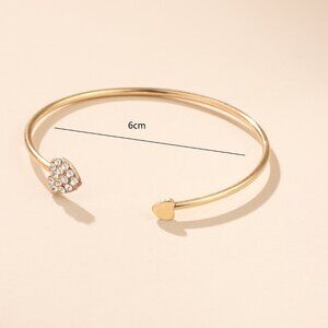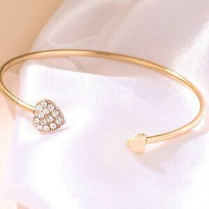 Double Heart Rhinestone Gold Plated Bangle Cuff Bracelet Diamond Crystal Jewelry