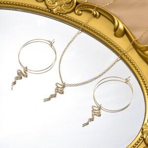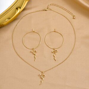 3/$35 Gold Plated Snake Jewelry Set Hoop Earrings Chain Pendant Necklace