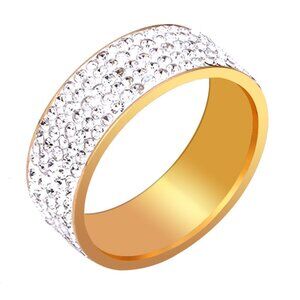 3/$35 Gold & Silver Cubic Zirconia Wide Band Ring Stainless Steel CZ Jewelry