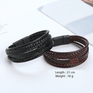 TAGS: Black Bracelet, Leather Bracelet, Faux Leather, Braided Bracelet, Woven Bracelet, MultiLayer Bracelet, Stackable Bracelet, Mens Bracelet, Jewelry, Gifts For Him, Urban Style, Biker Jewelry, Goth Style, Boho Style, Magnetic Clasp, New With Tags