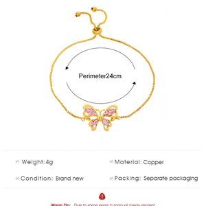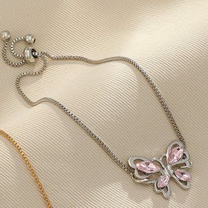 3/$35 Pink Butterfly Charm Pendant Silver Chain Bracelet Copper Crystal Jewelry