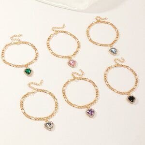 3/$35 Pink Heart Cubic Zirconia Gold Chain Charm Pendant Bracelet Diamond