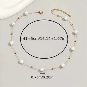 3/$35 Sheer Line Chain Faux Pearl & Gold Bead Floating Choker Necklace Jewelry