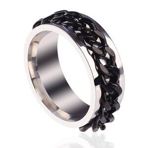 3/$35 Silver Stainless Steel Band Ring Black Chain Design Unisex Men Women
