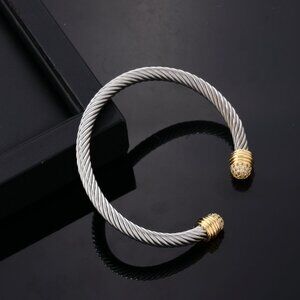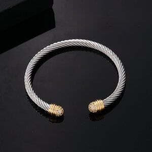 Twisted Silver Gold Stainless Steel Bangle Cuff Bracelet Cubic Zirconia CZ