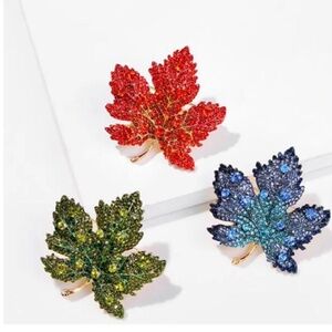 ❤️3/$36 Beautiful Green Diamonte Canadian Maple Leaf Golden Enamel Brooch Brand