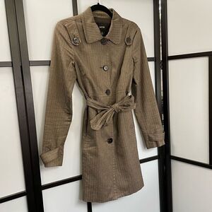 [3/4] Jacob Brown & Tan Fall Long Sleeve Belted Trench Coat Rain Jacket Women’s