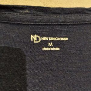 The picture doesn't do this top justice. It's a long tunic T-shirt made by ND New Direction. Has 3/4 sleeves and is Navy Blue and was rarely worn so like new.