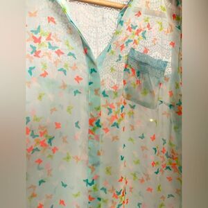 3/4 Sleeve Blue Butterfly Smock Style Blouse