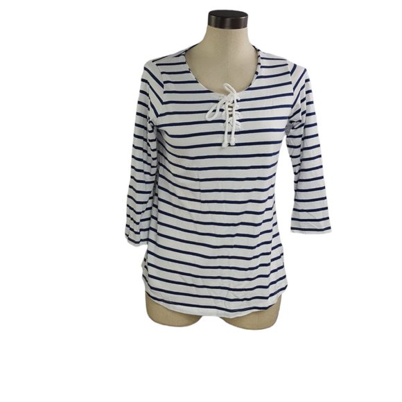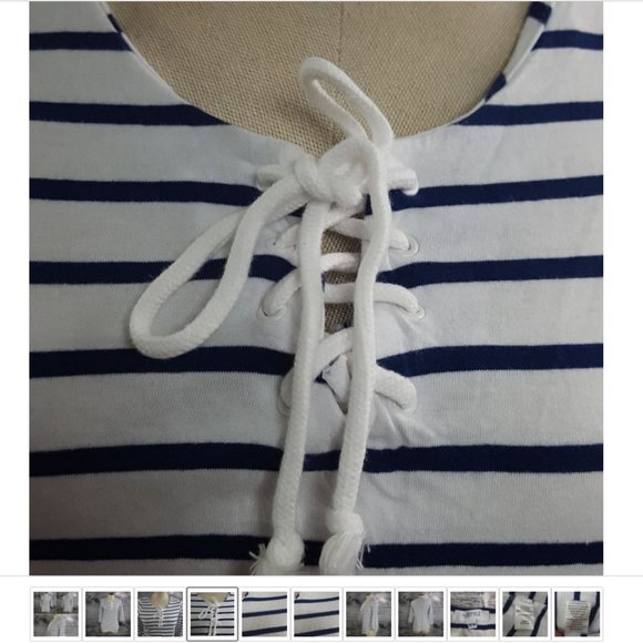 Horizontal Stripes with drawstring on front neckline.