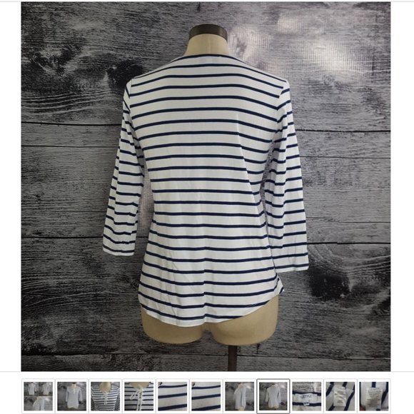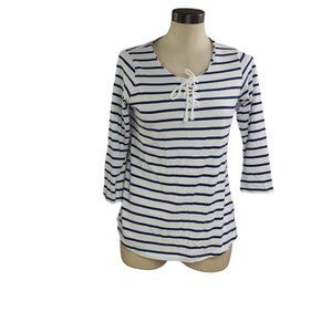 3/4 Sleeves Shirt Horizontal Strioes Blue White 100% Cotton Drawstrings