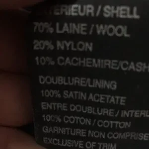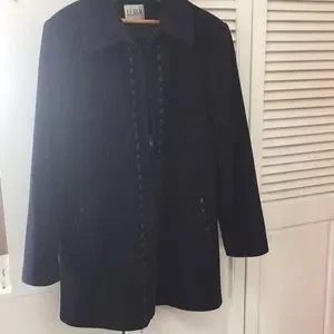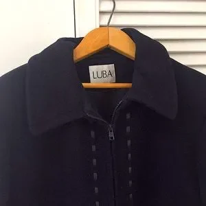 Navy 3/4 length jacket 70% wool 20% nylon 20.% cashmere