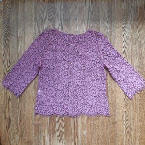 3/4 sleeve lace top, beautiful lilac colour and thick lace material, buttons on the back