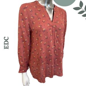 🛍️3/$40 EDC Rust Orange Floral Print Blouse Lightweight Patterned Blouse Medium