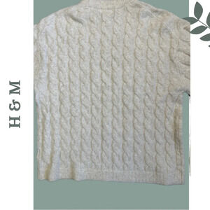 🛍️3/$40 H & M Long Sleeve Crew Neck Cable Knit Sweater Cream Size Extra Small