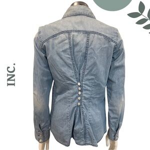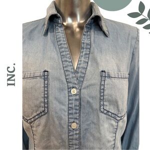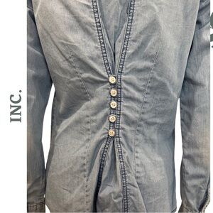 🛍️3/$40 INC Chambray Denim Button-Down Shirt Long Sleeve Lace Up Detail – Size 4
