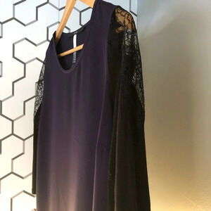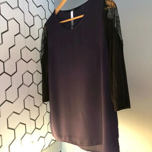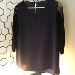 🛍️3/$40 Kensie Purple w/ Black Lace Tunic Top Size Small