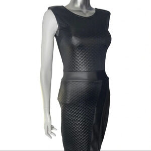 Black Sleeveless back zipper asymmetrical cut hem with band detail and quilt look fabric