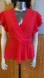 Red and white polka dot shirt sleeve blouse with faux wrap and tie waist detail.