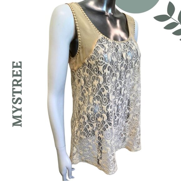 🛍️3/$40 Mystree Cream Lace Tunic Tank | Soft Feminine Boho | Sleeveless Medium