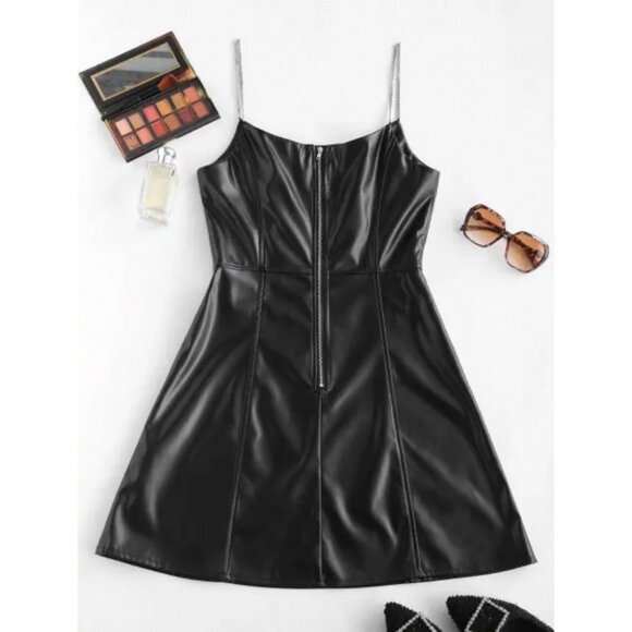 🧚♀️ 3/$40 NEW Zaful Faux Leather Chain Strap Zip Black Cami Dress Size 6