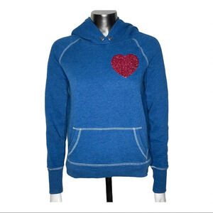 PINK Victoria’s Secret Glitter Hoodie in a dark turquoise blue. Glitter heart on front and lots of glitter on the back! Perfect spring and summer hoodie!