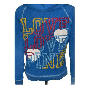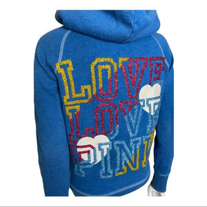 🛍️3/$40 PINK Victoria’s Secret Glitter Hoodie Turquoise Size XS