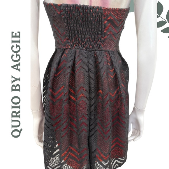 🛍️3/$40 Qurio by Aggie Strapless Chevron Dress Black w/ Red Underlay – Medium