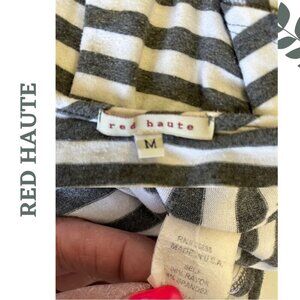 🛍️3/$40 Red Haute Stripe Grey White Knit Top Batwing Sleeves V Neck Size Medium