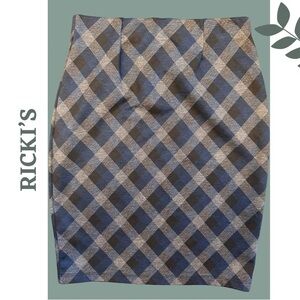 🛍️3/$40 Ricki’s Stretch Mini Skirt Pull On Diamond Pattern Blue Black Small