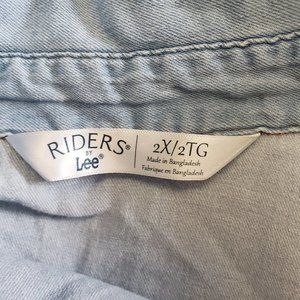 🌈 3/$40 Riders Lee Light Blue Jean Sleeveless Button Down (T4)