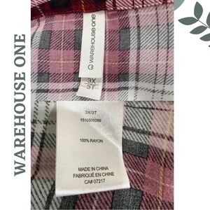 🛍️3/$40 Warehouse One Plaid Peasant Blouse – Red White Size 3X