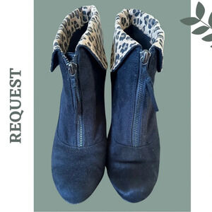 🛍️3/$40 Women’s Heeled Zipper Frint Ankle Boot Animal Print Accent Size 7