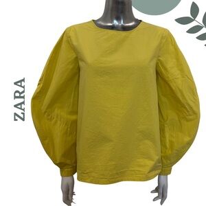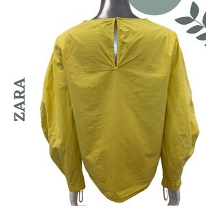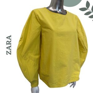 🛍️3/$40 ZARA Collection Yellow Poplin Cotton Balloon Sleeve Blouse – Size Small