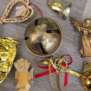 Keywords: vintage ornament bundle, gold Christmas décor, retro holiday decorations, collectible ornaments, mid century Christmas, vintage holiday bundle, Christmas tree ornaments, nostalgic holiday décor, festive ornament lot, gold themed Christmas