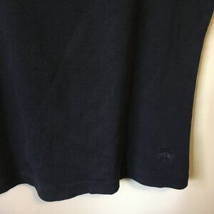 Very good preowned condition, dark navy blue/almost black, rounded neck, vertical ribbed tank top/undershirt by Brooks Brothers. Made from a cotton blend, this tank is somewhat fitted and perfect for layering.