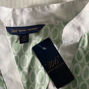 346 Brooks Brothers Women's V Neck Tunic Geometric Pattern Top Green US XS