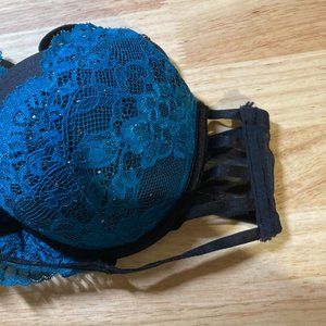 34C La Senza Teal and Black BEYOND SEXY Pushup bra with rhinestones