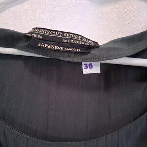 35. All Saints Silky Ruffle Sleeve Werbovy Hip Hugging Mini Dress Grey & Black 6