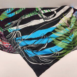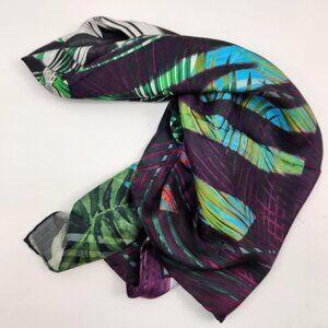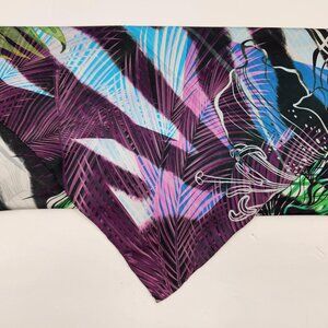 35" Square Silk Scarf, Purple, Green, Blue Swirl, Large Square Scarf, Neck Scarf