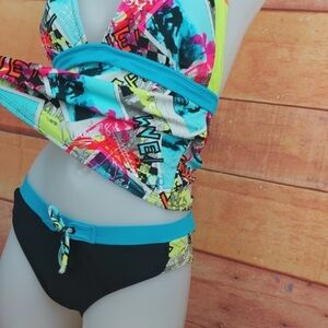 🍄3/50$🍄 Op neon accents tankini top large buttom small